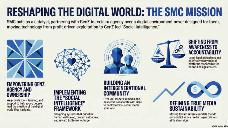 Key developments include a landmark 2026 legal verdict in K.G.M. v. Meta Platforms, Inc., which found major tech platforms negligent in their design, effectively challenging the long-standing “liability shield” of Section 230. Simultaneously, a growing ecosystem of over 135 alternative, decentralized, and “healthier-by-design” platforms is emerging to challenge the dominance of Big Tech. The mission of the SMC is to foster “Social Intelligence”—a framework where technology is built with human values and purpose, granting Generation Z agency over their digital lives rather than just protection from them.